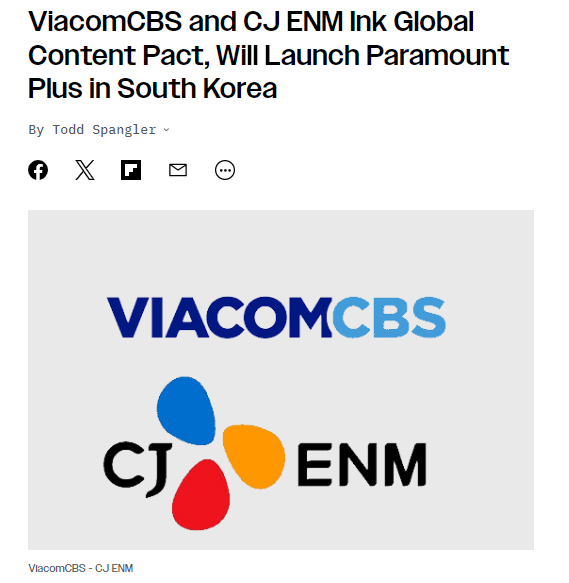 Paramount’s partnership with CJ ENM established Paramount as a partner in the production and distribution of Korean series. It also enabled the launch of Paramount+ in South Korea, where Paramount+ is a branded zone within TVING, a CJ ENM-controlled streaming platform.