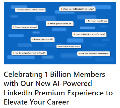 Today, we introduced a new AI-powered Linkedin Premium experience bringing a higher level of personalization to each interaction. This tailored experience encompasses everything from gaining deeper insights into crucial topics to receiving personalized career action suggestions.