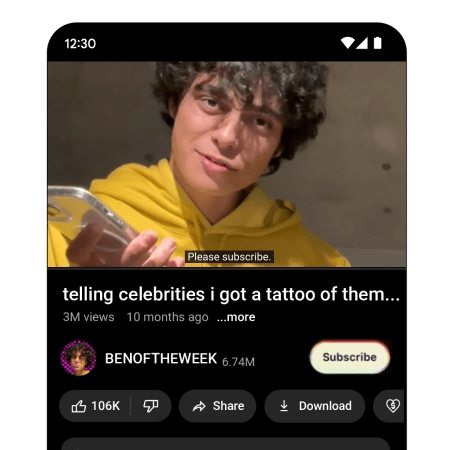Animations that celebrate meaningful moments: We wanted to bring more life to the video watching experience, so now when you’re watching on web or mobile, the page may react to what a creator says. Now, when creators ask viewers to “like” or “subscribe,” a visual cue on those buttons will appear in sync with the video. And once fans smash that button, a subtle explosion of playful sparkles will reward them. Top comments automatically rotate so you can scan the best commentary from the community. And, for new video uploads, we added a new animation that updates view count and like count in real time for the first 24 hours to show how many other users are engaging with what they’re watching.