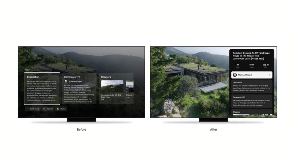 It’s all in the details: We’ve been modernizing the YouTube experience on Smart TVs over the past year, and now we’re adding a few more touches to make it easier to navigate videos. On Smart TVs, viewers can find details about a video they are watching in a new vertical menu that enables quicker access to features such as the video description, comments, the subscribe button, as well as video chapters. Just click on the video title while watching a video to pop up the menu. We’re also rolling out similar improvements on web and mobile, including a scrollable description section with a cleaner design.