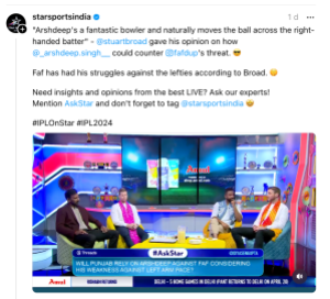 - ‘Ask Star’ – During a live match, fans can submit their questions to the commentary team at Star Sports on Threads, who will then select some of them to answer.