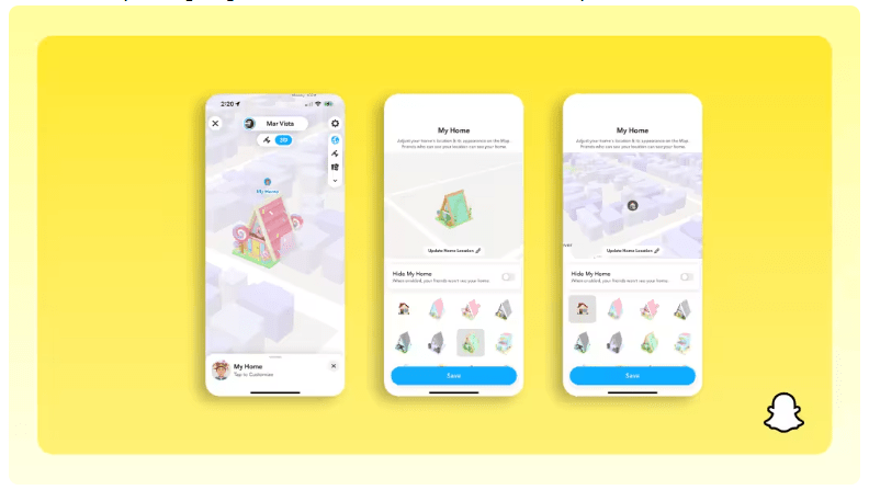 Design a personalized house on Snap Map, visible to you and friends you share your location with on Snap Map. There are nearly infinite ways to customize your crib, whether you’re going for a realistic look or whimsical candy castle.