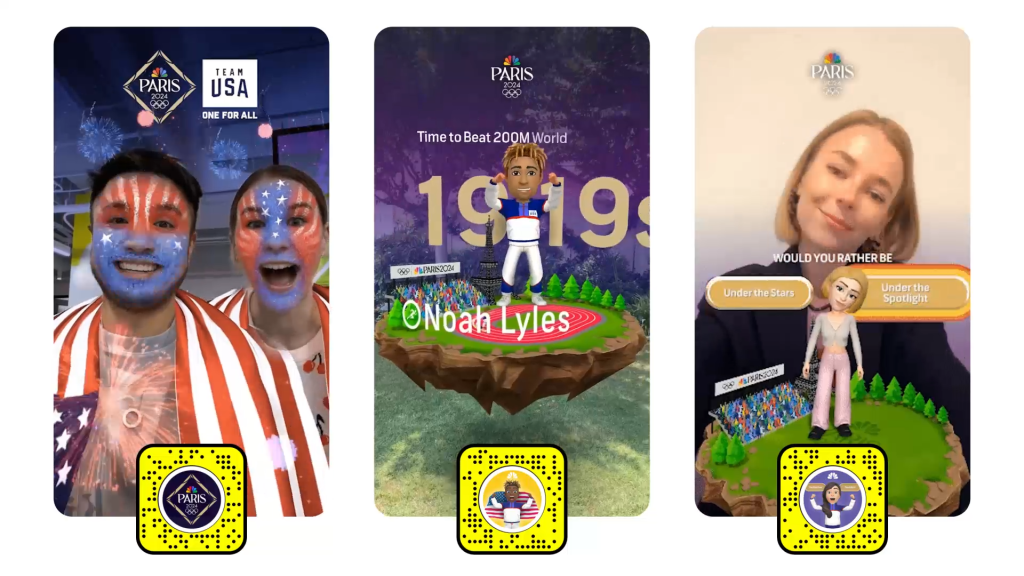 Arcadia, Snapchat’s AR Studio which focuses on building groundbreaking experiences with innovative brands, has partnered with NBCUniversal to bring a suite of exciting AR experiences to immerse Gen Z fans in the US, bringing them front row to the Opening Ceremony, giving them personalized tune-in recommendations complete with real-time stats, and introducing them to Team USA athletes and their Bitmojis, including Team USA Paralympians (e.g. Track & Field star Ezra Frech):