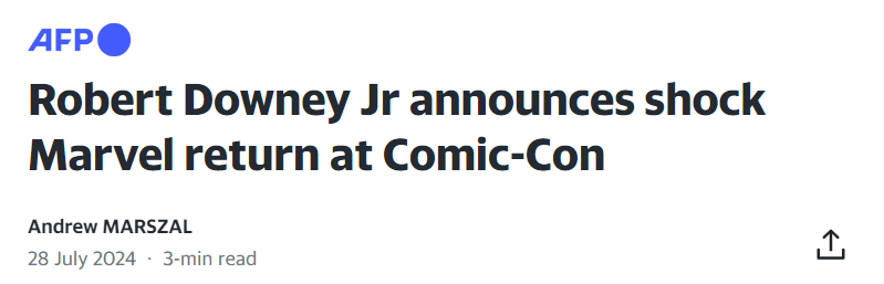 Robed figures dressed in Doctor Doom masks took the stage and then parted so that Downey could reveal himself. Hall H erupted in thunderous applause, chanting “RDJ!”