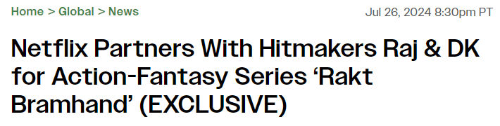 Speaking of their exciting collaboration with Netflix, Raj & DK share, “This is uncharted territory which makes it all the more thrilling for us! Our goal is to develop a fictional world that is both original and reminiscent of the fantastical tales we have heard in our childhood. We are having an amazing time working with the very talented Rahi and our uber versatile partner Sita to bring this unique vision to life. Working with Netflix has been excellent and we have their enthusiastic support to back the unconventional vision for Rakt Bramhand!”