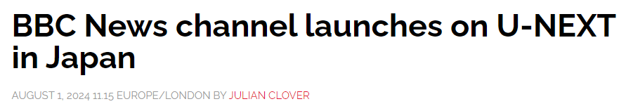 “We are very pleased to announce the launch of the international news broadcaster BBC News on the video distribution service U-NEXT, delivering global news 24 hours a day, 365 days a year, in two languages. U-NEXT has been expanding entertainment content such as movies, dramas and animations, while also enhancing high-quality documentary and news content as a service to offer ‘what’s happening now’. We will also be delivering global, high-quality documentary programmes that only the BBC can offer to our Japanese audience. Please enjoy.”