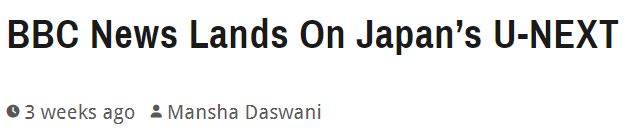 Phil Hardman, SVP & General Manager at BBC Studios Asia, says: “We’re delighted to expand our partnership with U-NEXT and bring the BBC News channel, including its groundbreaking documentaries, to our audiences in both English and Japanese. The BBC continues to report impartially and without fear or favour on global events and we know our journalism is greatly trusted in Japan. BBC Studios has ambitious plans in Japan, working closely with our valued partners, and this marks a significant step forward for our BBC News brand by adding it to our existing partnership with U-NEXT.”