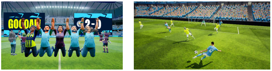 Manchester City’s home, the Etihad Stadium, has been faithfully reproduced in virtual space, and fans can visit anytime with their avatars. At the virtual stadium, fans can enjoy the kind of immersive virtual content that is only possible in virtual space, such as Immersive Highlights, which allow them to freely view highlights of past home games in 3DCG from any viewpoint.