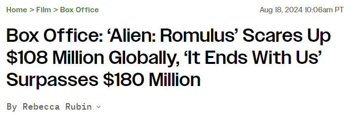 This weekend saw The Walt Disney Studios hold both the No. 1 and No. 2 spots domestically with Alien: Romulus and Deadpool & Wolverine.