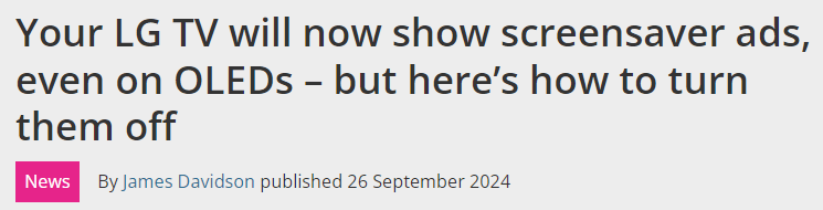 LG’s smart TVs are starting to display full-screen ads before the conventional screensaver kicks in when entering idle mode. The native screensaver ads started rolling out to LG’s smart TVs earlier this month, including OLEDs like the new G4 model, and will appear across the homescreen, content store, and LG Channels.