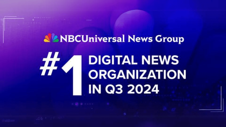 NBCU News Group ranks as the #1 digital news organization in the U.S. for Q3 2024, with an average of 146 million monthly unique visitors, according to Comscore. NBCU News Group continues to lead all news competition including CNN, ABC News, CBS News, Fox News, New York Times and Washington Post. It was the NBCU News Group’s second best quarter since becoming a public-facing entity.