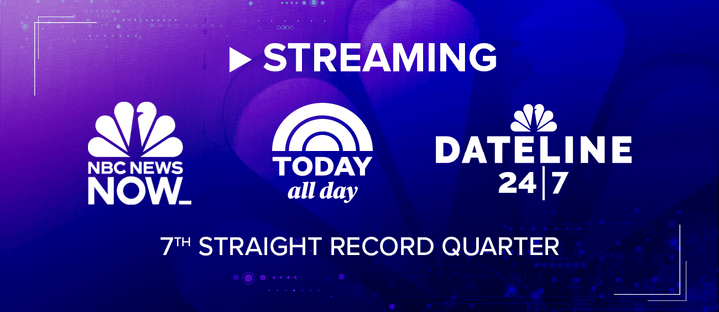 NBCU News Group’s streaming services delivered its seventh straight record quarter in Q3 2024, marking +44% year-over-year growth with all three reaching major viewership milestones.