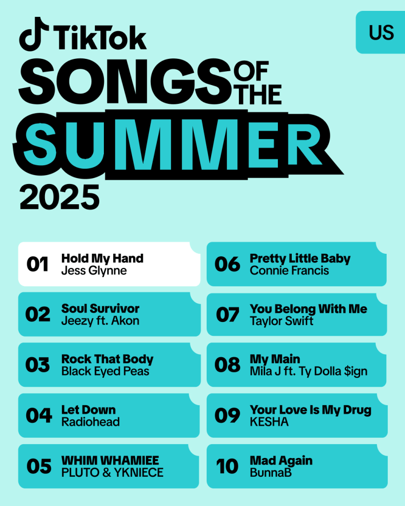 Today TikTok can confirm that the undisputed Global #1 Song of the Summer 2025 – as well as the #1 Song of the Summer in the US – is Hold My Hand by Jess Glynne.
